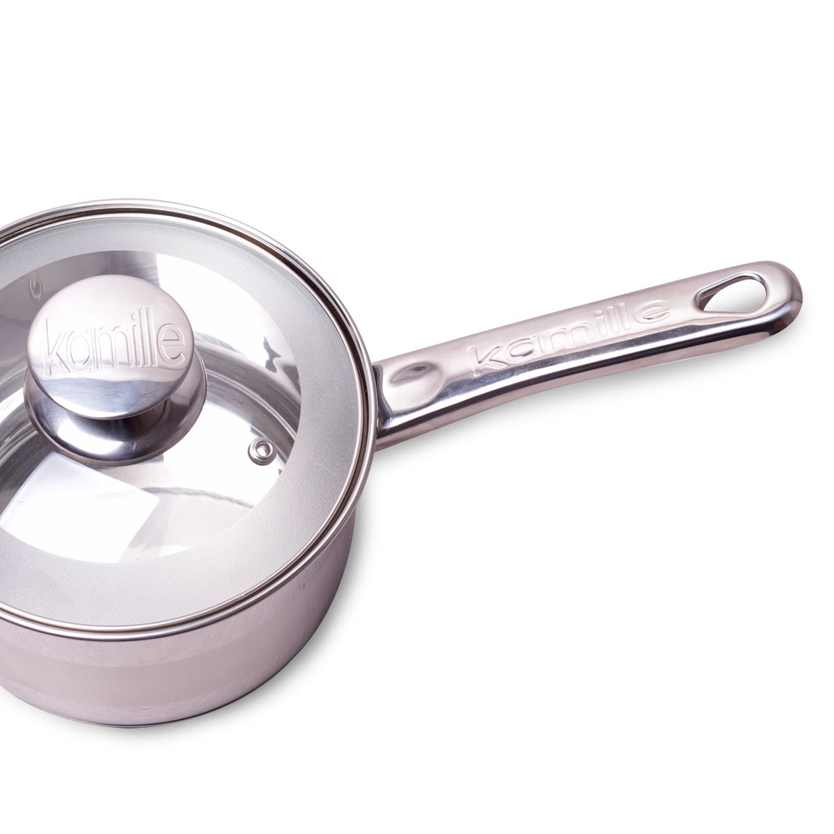 Ківш Kamille KM-4526S 2.1 л з нержавіючої сталі з кришкою з сатиновим напиленням і порожнистими ручками